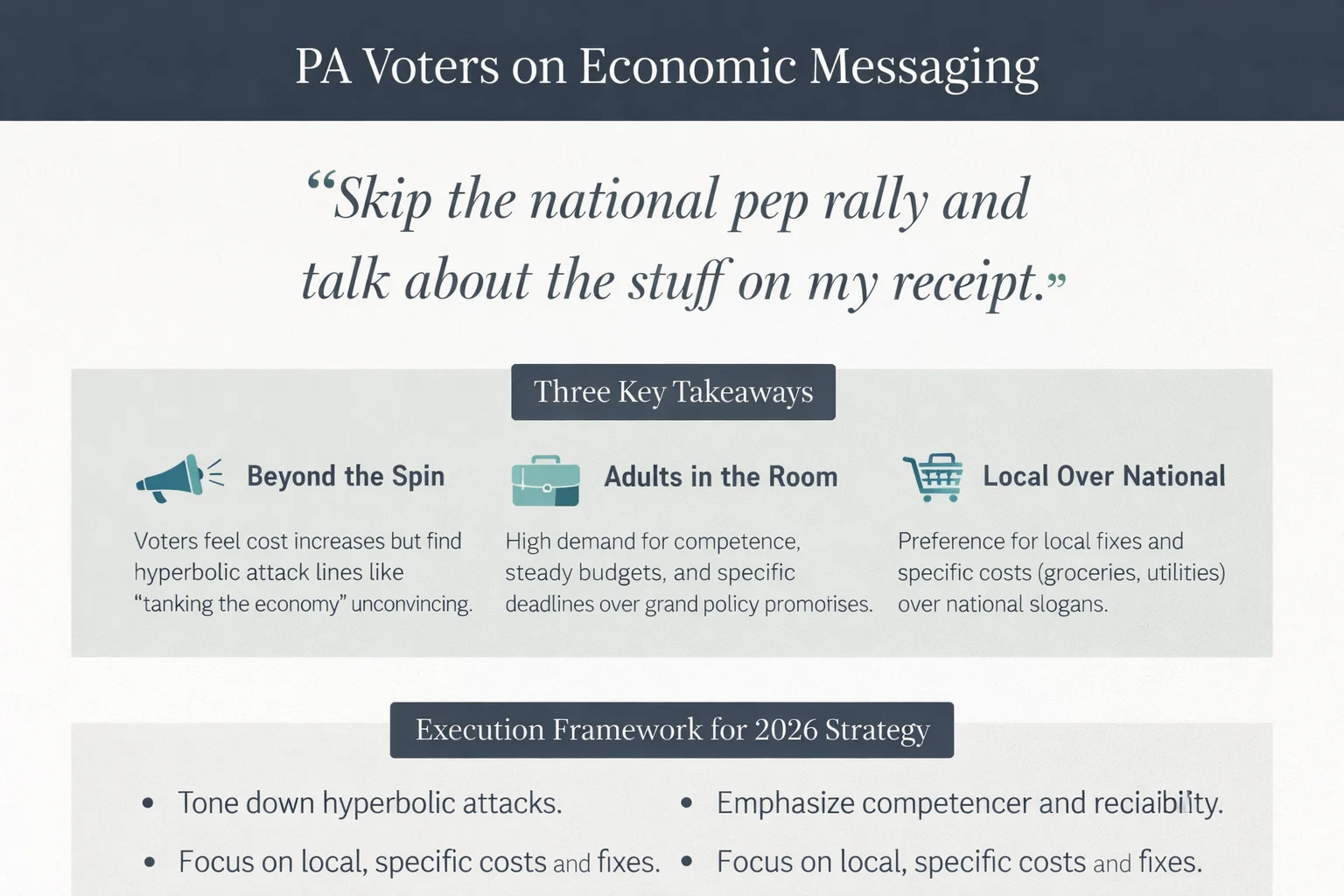 For Democratic campaigns in Pennsylvania battleground districts, this research suggests a messaging recalibration: